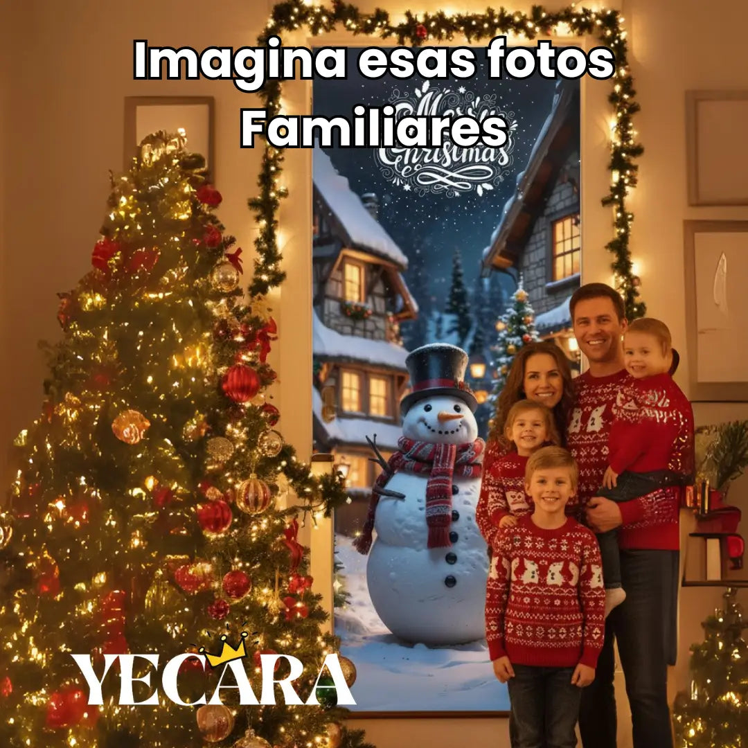 FestiPuerta transforma tu entrada en segundos. Imagina las fotos familiares con tu puerta navideña.